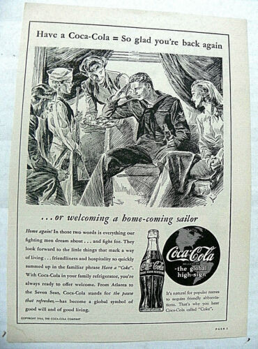 Title (ebay affiliate link): 1944,APR GRADE TEACHER "HAVE A COCA-COLA=SO GLAD YOU''R BACK" HOME-COMING SAILOR