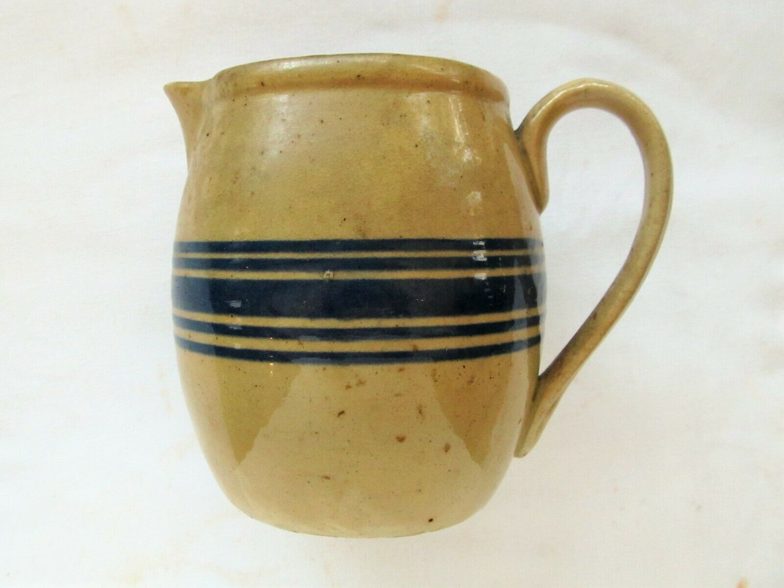 Title (ebay affiliate link): Antique Primitive 6" Yellow Ware Pitcher w/ Blue Bands Kitchen Primitive
