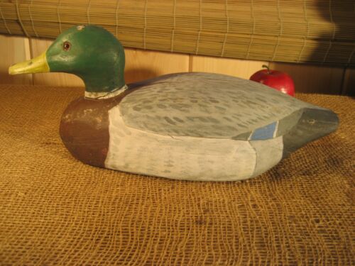 VINTAGE ANTIQUE HAND CARVED WOODEN MALLARD DUCK DECOY-ROBERT BLACK