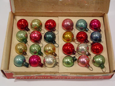 Title (ebay affiliate link): VTG TINY GLASS XMAS FEATHER TREE ORNAMENTS *24* IN BOX