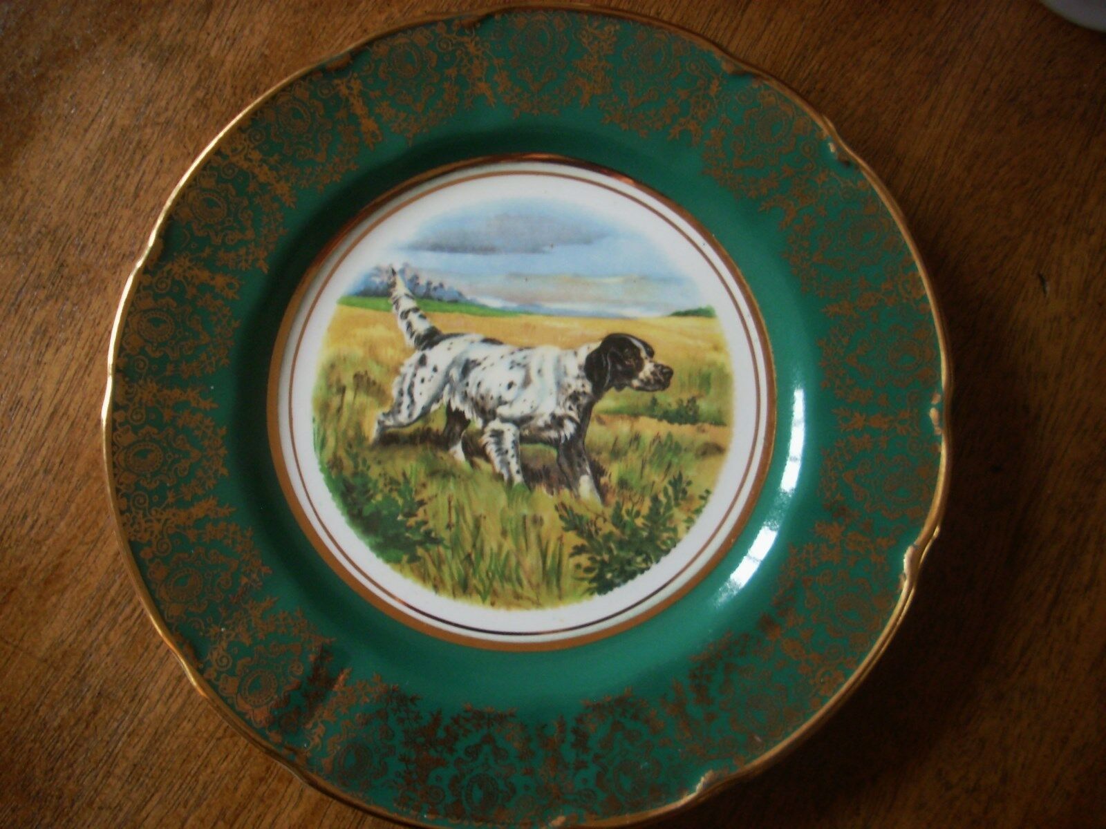 Title (ebay affiliate link): Antique ARKLOW made Ireland 8" plate English Setter Hunt gold trim plate superb