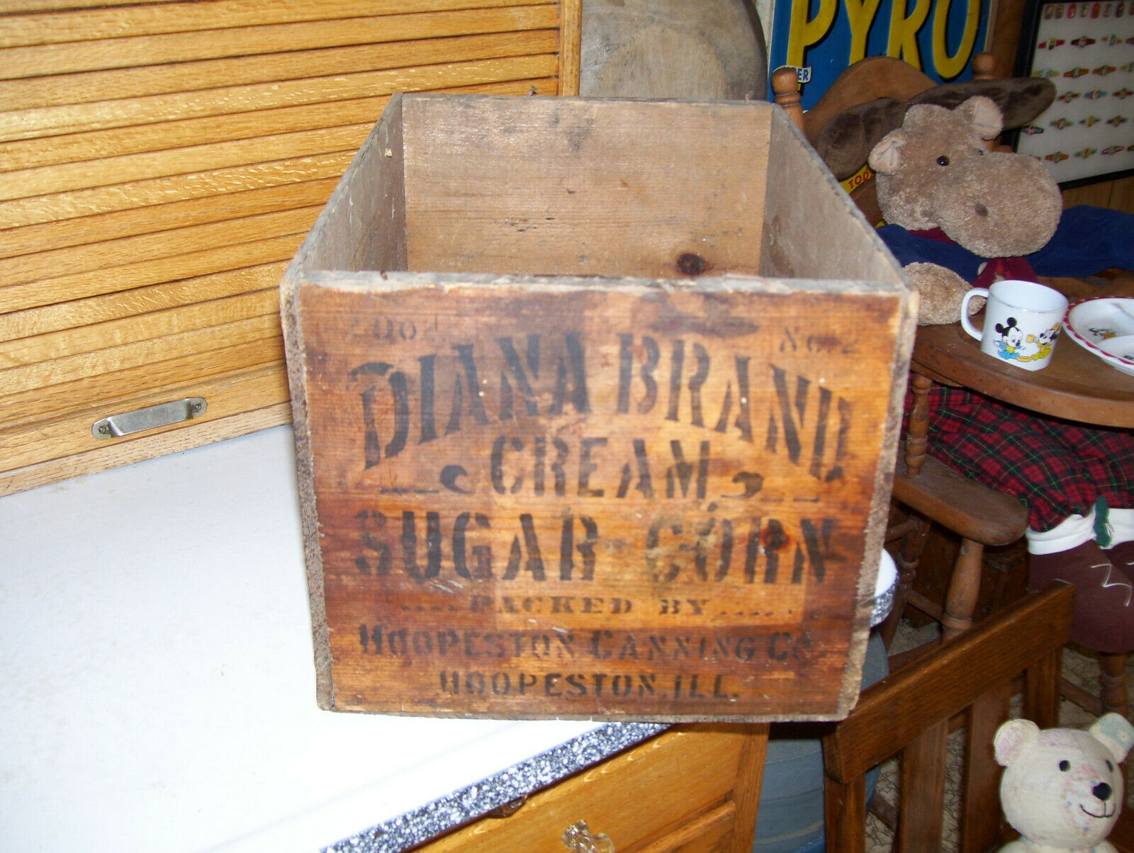 OLD DIANA CREAM SUGAR CORN WOOD BOX-HOOPESTON,ILL.- NICE BOX FOR YOUR KITCHEN!!