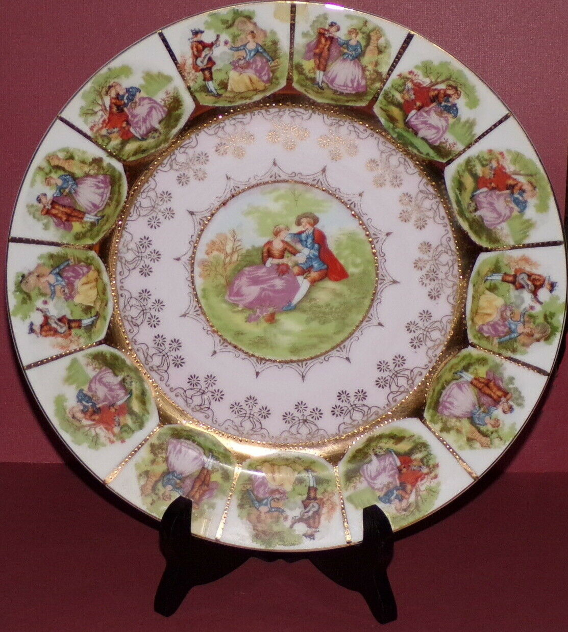 Antique Fragonard Courting Couples Arnart Gold Beaded Cabinet Charger Plate