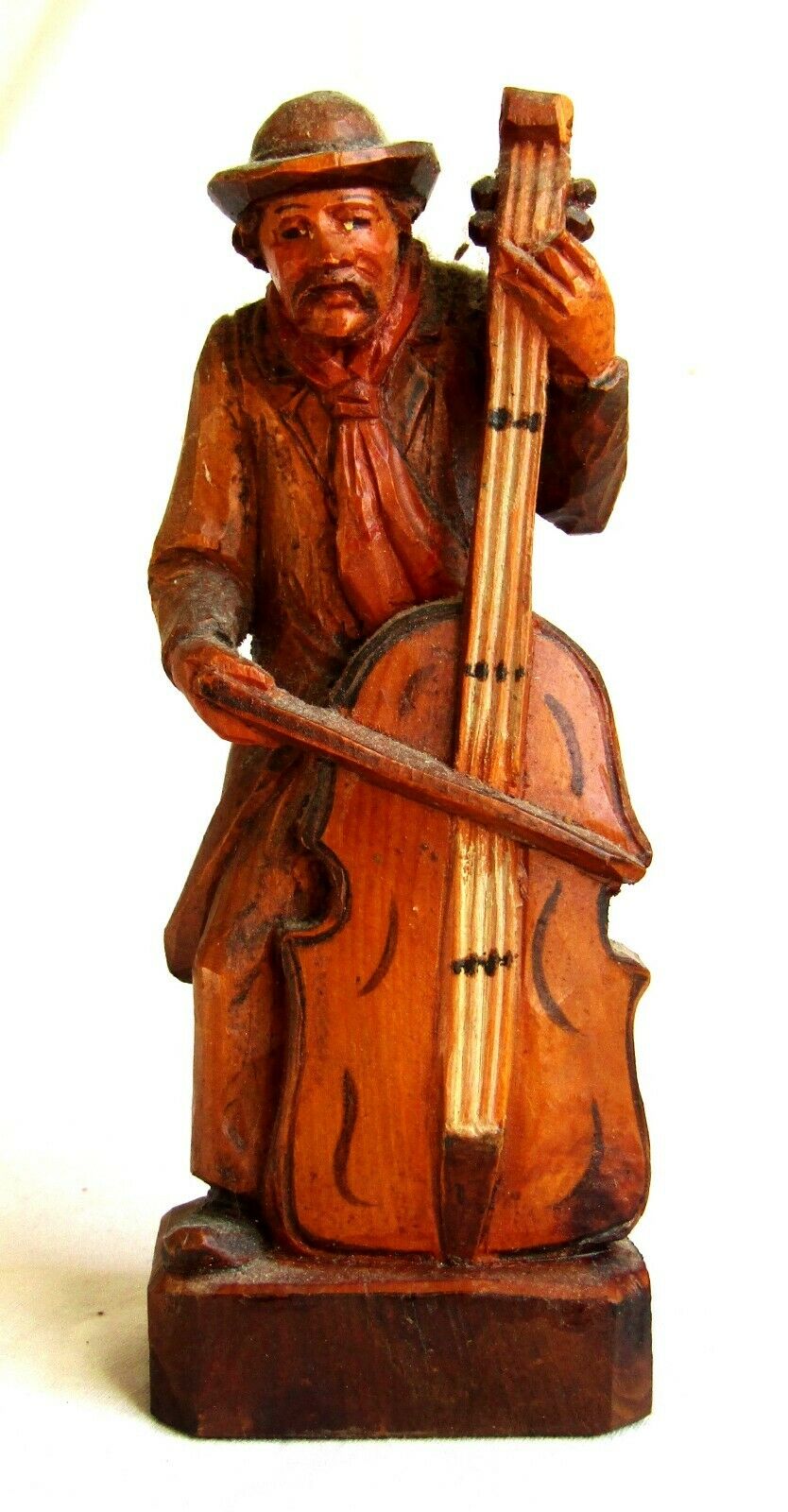 Title (ebay affiliate link): German Black Forest 6" Carved Wood Figure - Cellist or Upright Bass Player