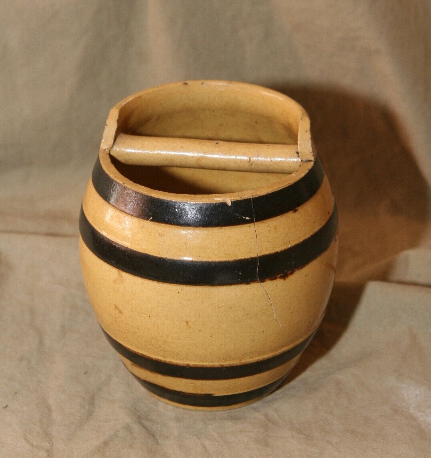 Title (ebay affiliate link): Antique Brown Banded Open Yelloware Unusual Rare Open Jar Pot Honey? 5.5" no lid