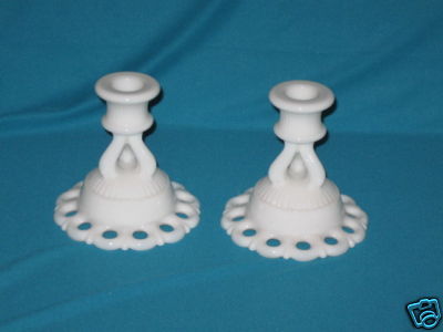 2 Westmoreland Doric Border Milk Glass Candle Holders