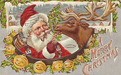 Title (ebay affiliate link): Christmas PC 1909. SANTA FEEDING CANDY CANE, REINDEER
