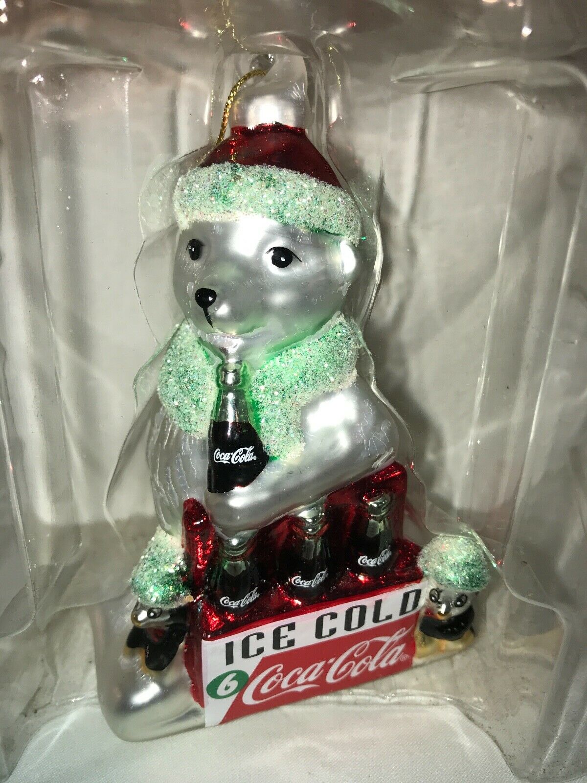 Title (ebay affiliate link): Coca Cola Blown Glass Ornament Polar Bear Penguins Ice Cold Cokes!