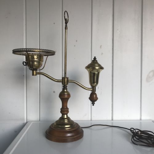 Vintage Student Bankers Desk Table Lamp Brass and Wood 23" Tall