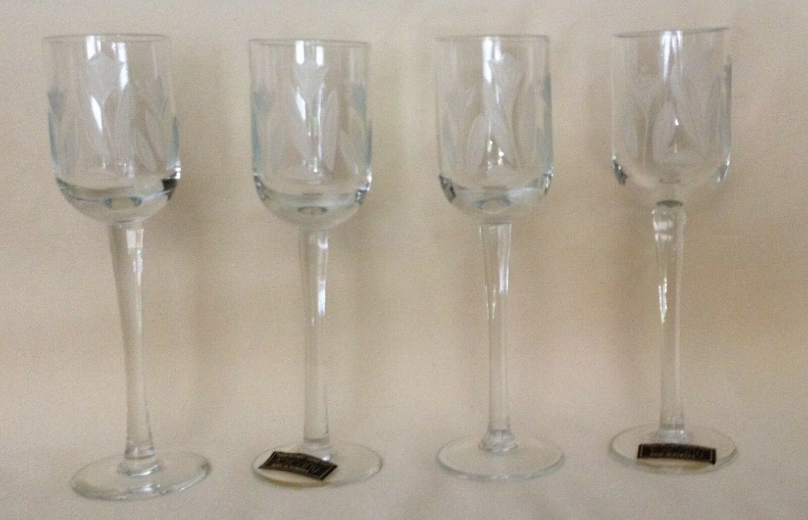 Etched Wine/Cordial/Sherry Glasses Set of 4 Tulips and Leaves