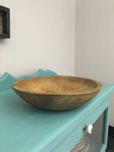 Title (ebay affiliate link): Parrish Wooden Dough Bowl rustic farmhouse antique wood fruit kitchen decor