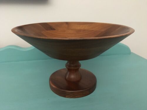 Wood Bowl with Pedestal Base - maple midcentury modern vintage antique fruit