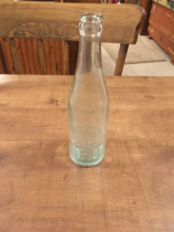 VINTAGE 9 IN 10 OZ GREEN TINT GLASS BOTTLE VERNOR''S GINGER ALE DETROIT, MI