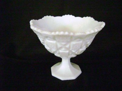 WESTMORELAND MILK GLASS OLD QUILT PEDESTAL BOWL 5 1/2"