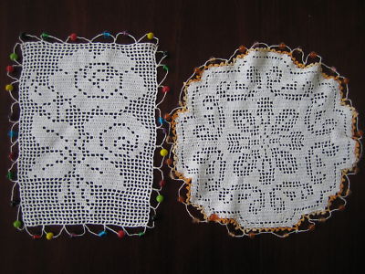 HAND CROCHETED MILK JUG COVERS GLASS BEADS FILET STYLE