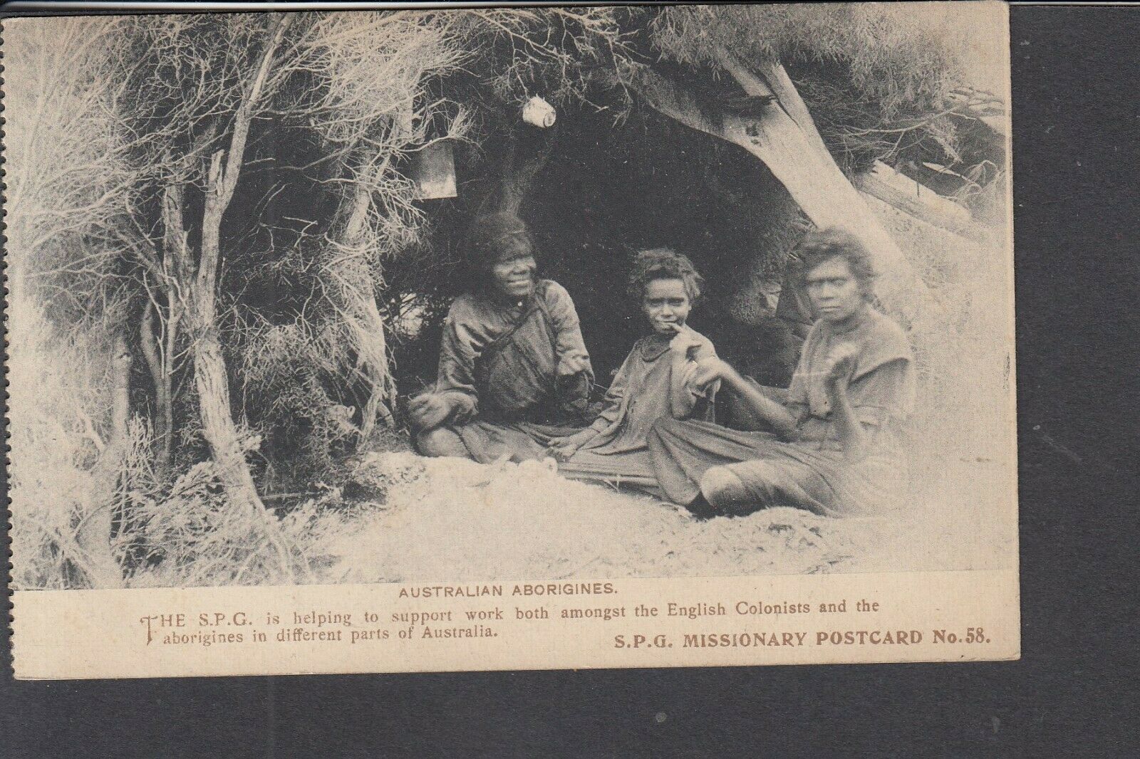 Title (ebay affiliate link): Australia - Aborigines in Hut - S.P.G. Missionary Postcard No. 58