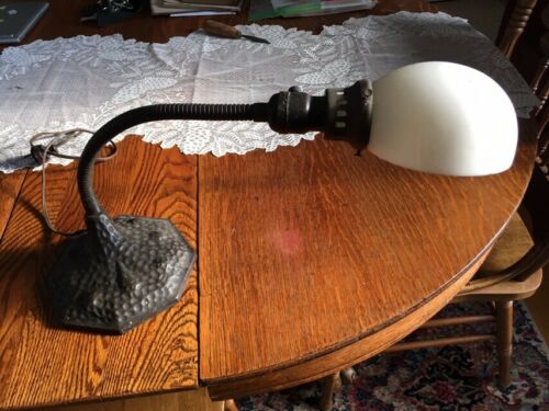 Goose Neck Iron Octagon Base Banker’s Lamp Milk Glass Shade