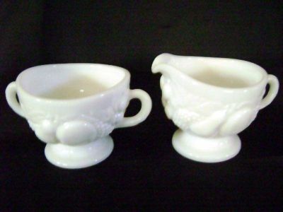 WESTMORELAND MILK GLASS DELLA ROBIA CREAM & SUGAR