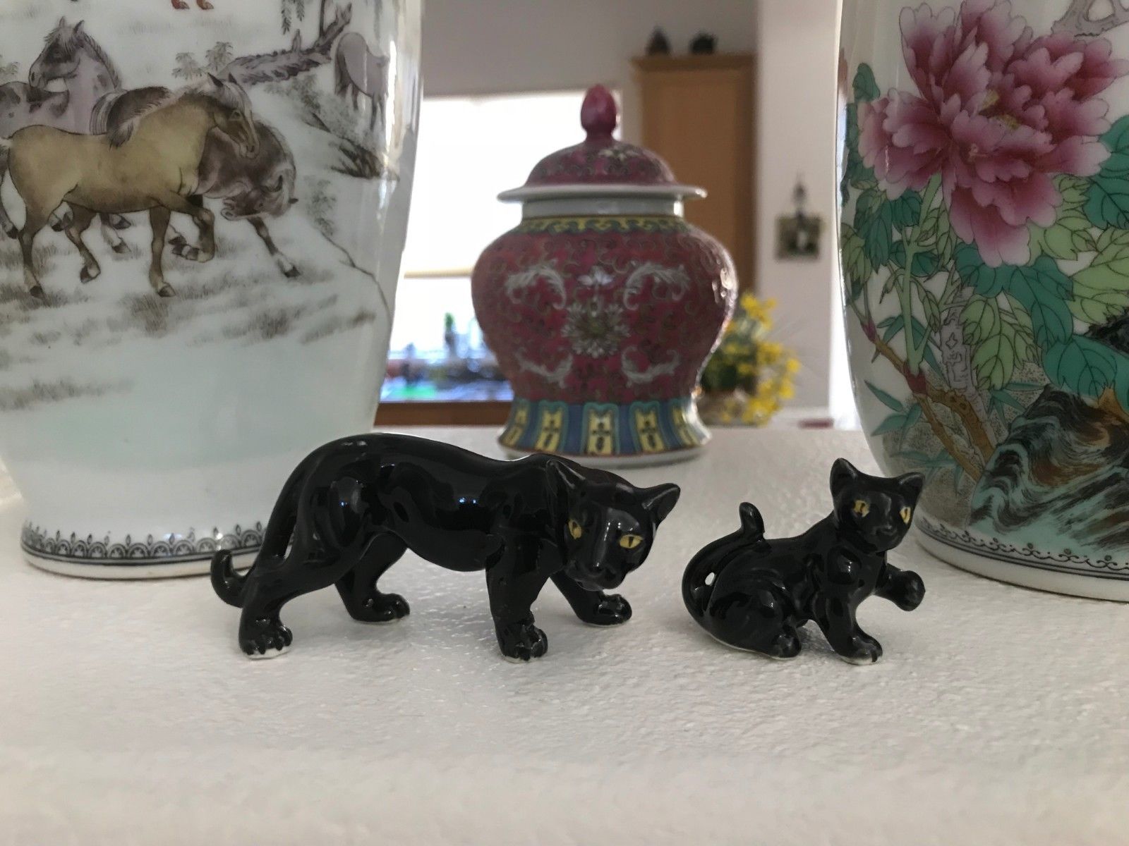 Title (ebay affiliate link): Two porcelain black cats figurines, cat figure antique vintage collection