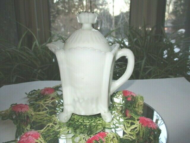 Title (ebay affiliate link): EAPG FOOTED CREAMER & LID WESTMORELAND MILK GLASS SOLD AS COMMERCIAL MUSTARD POT