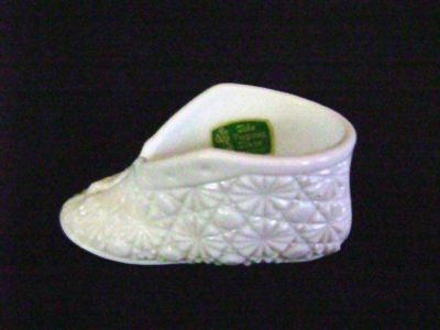 DAISY & BUTTON MILK GLASS BABY SHOE OLDE VIRGINIA GLASS
