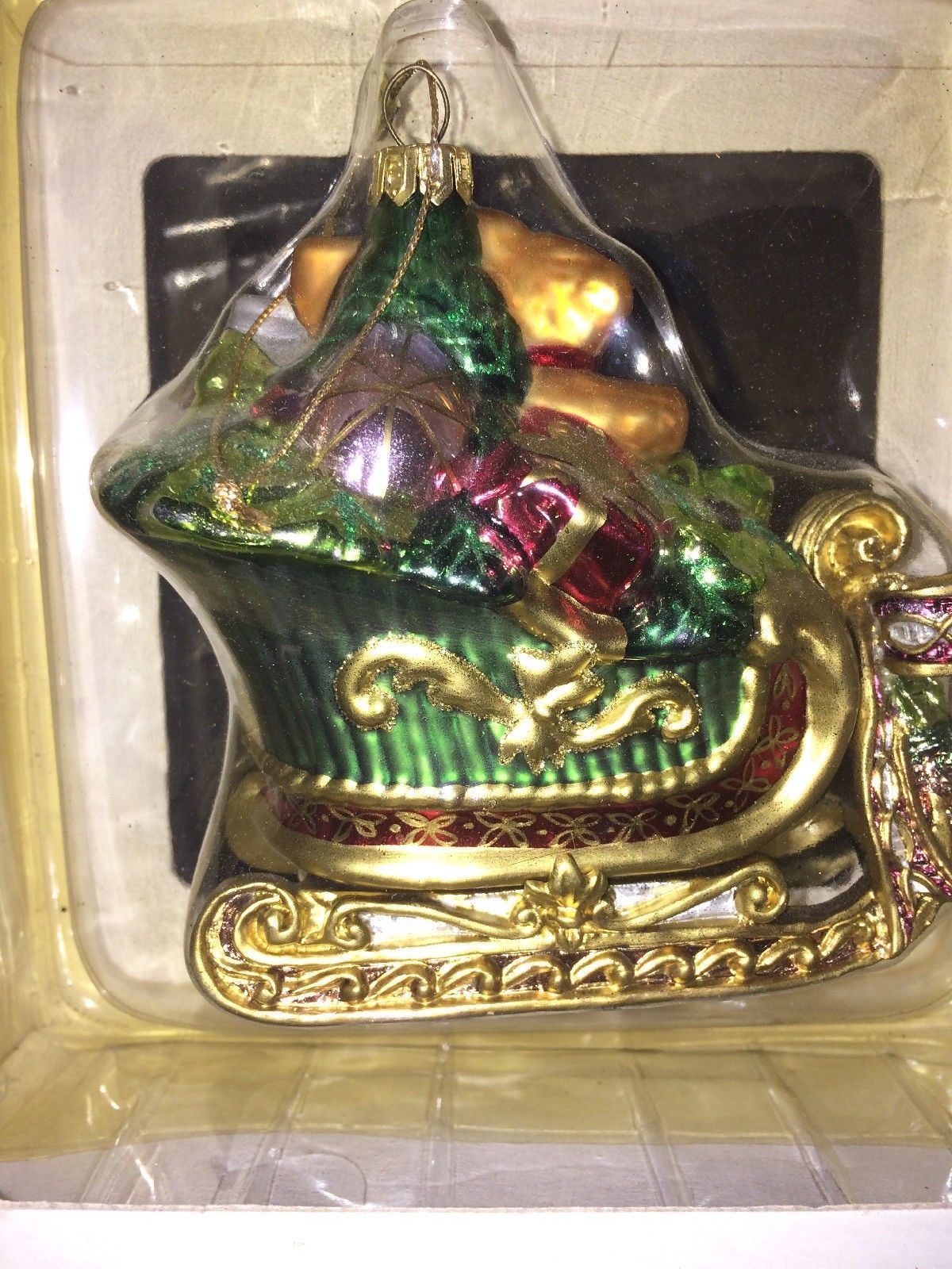 Title (ebay affiliate link): Fitz and Floyd Bear Toy Bag Sleigh Christmas Tree Ornament NOS 18B011