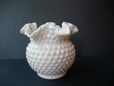FENTON HOBNAIL MILK GLASS VASE 3" H