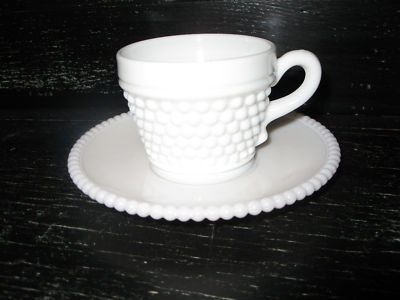 Set of 6 Milk Glass Tea Cups and 6 Saucer plates