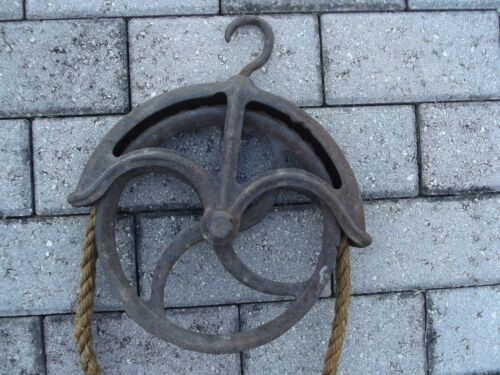 Old Antique Cast Iron Metal Farm Water Well Pulley Barn Hay Rope Block & Tackle