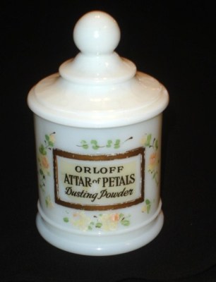 Vtg Vanity Hand Painted Milk Glass Orloff Powder Jar