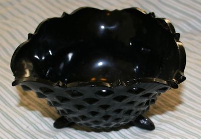 Gorgeous Footed, Cornered Hobnail Black Milk Glass Bowl