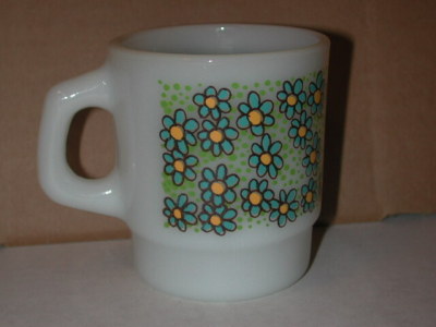 Anchor Hocking Milk Glass Mug Cup Blue Yellow Flowers