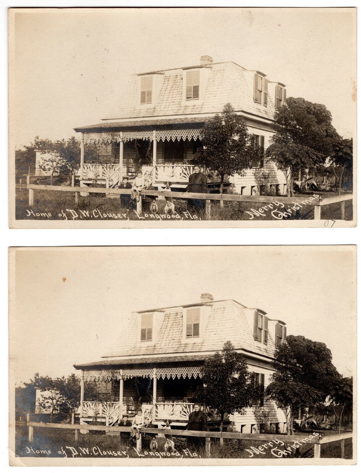 (2) Vintage Postcards- Home of D. W. Clouser, Longwood, FL- Merry Christmas