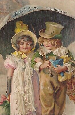 Boy & Girl walk under an umbrella. Early T.S.N PC