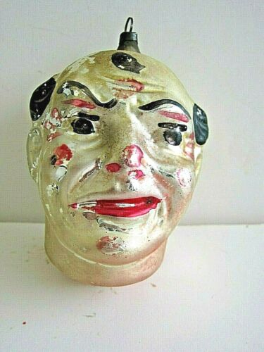 ANTIQUE CHRISTMAS ORNAMENT, CLOWN HEAD, REPAIRED
