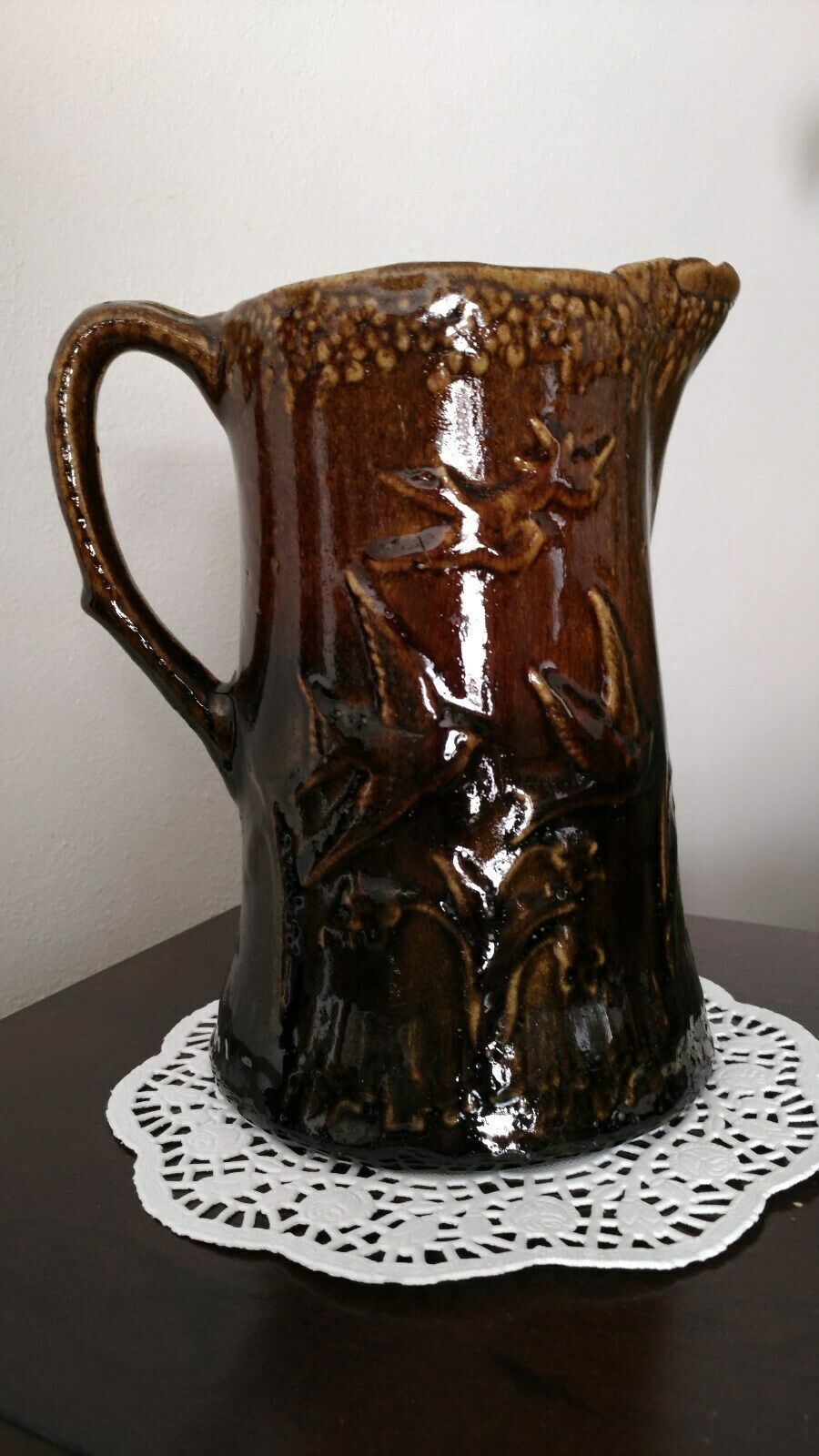 Title (ebay affiliate link): Antique Salt Glaze Stoneware Lovebirds Pitcher, Rockingham Browncirca 1850-1890