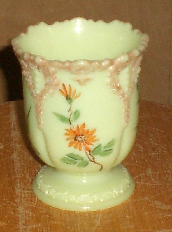 Antique Tarentum Glass Uranium Custard Glass Victoria Pattern Spooner