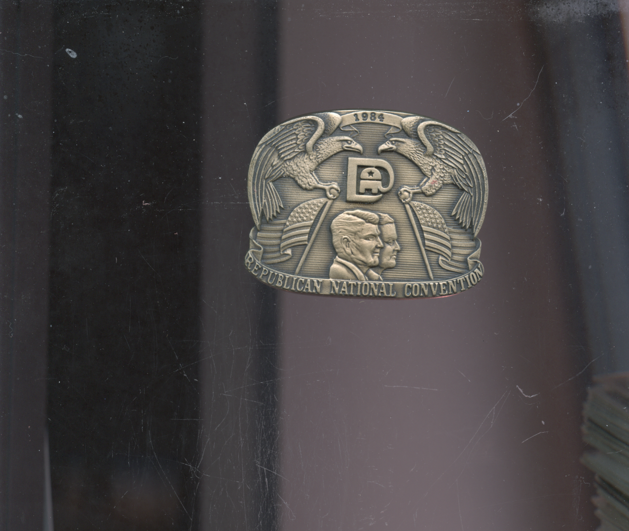 1984 Republican National Convention limited edition brass belt buckle, Reagan
