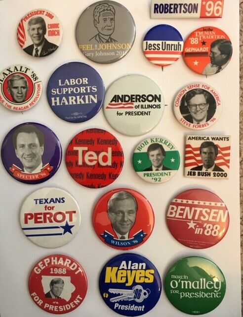 Title (ebay affiliate link): Lot of 20 Presidential Hopefuls Campaign Pins