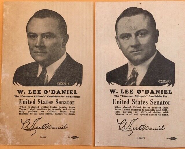 Title (ebay affiliate link): Two 3 1/2 by 5" W. Lee Daniel for US Senate (Texas) Campaign Cards