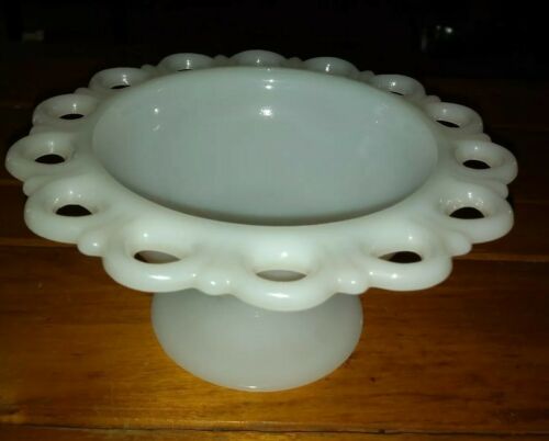 Title (ebay affiliate link): Vtg White Milk Glass Laced Edge Pedestal Footed Compote Candy Dish 3.25"T x 7"D