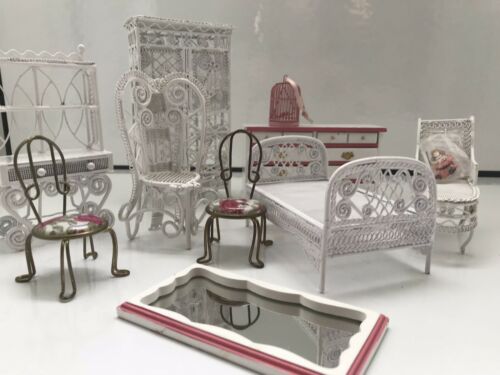 Lot of Vintage Doll House Bedroom Furniture Metal (Wicker) NICE!
