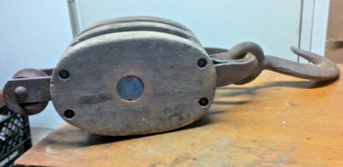 Title (ebay affiliate link): Vintage Union Hardware Double Cast Iron Wood Pulley with Hook