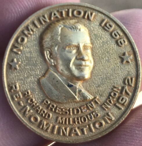 Title (ebay affiliate link): 1972 Richard Nixon Re-nomination Republican National Convention Token 38mm