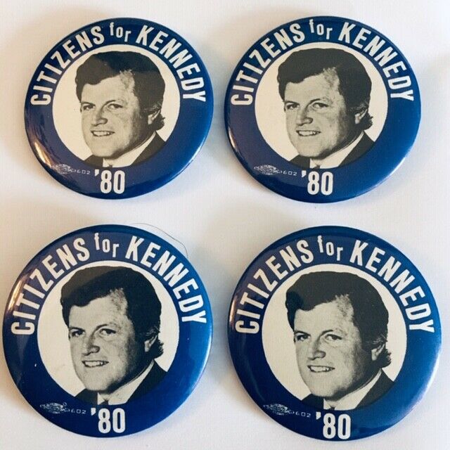 Title (ebay affiliate link): Four 2 1/4" Citizens for (Ted) Kennedy ''80 Campaign Pins