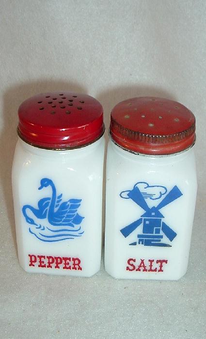Title (ebay affiliate link): McKee White Glass Windmill & Swan Salt & Pepper Shakers
