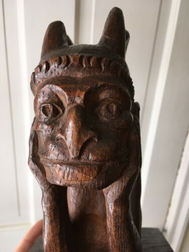 Early Carved Oak Gargoyle Or Grotesque Figure Carved Wood 15th Medieval Style