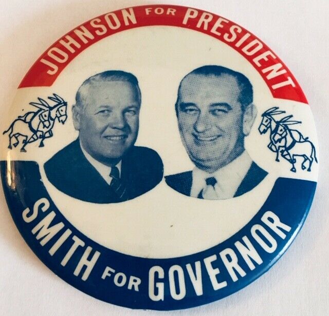 Title (ebay affiliate link): 3 1/2" LBJ for President - Smith for Governor Political Campaign Pin
