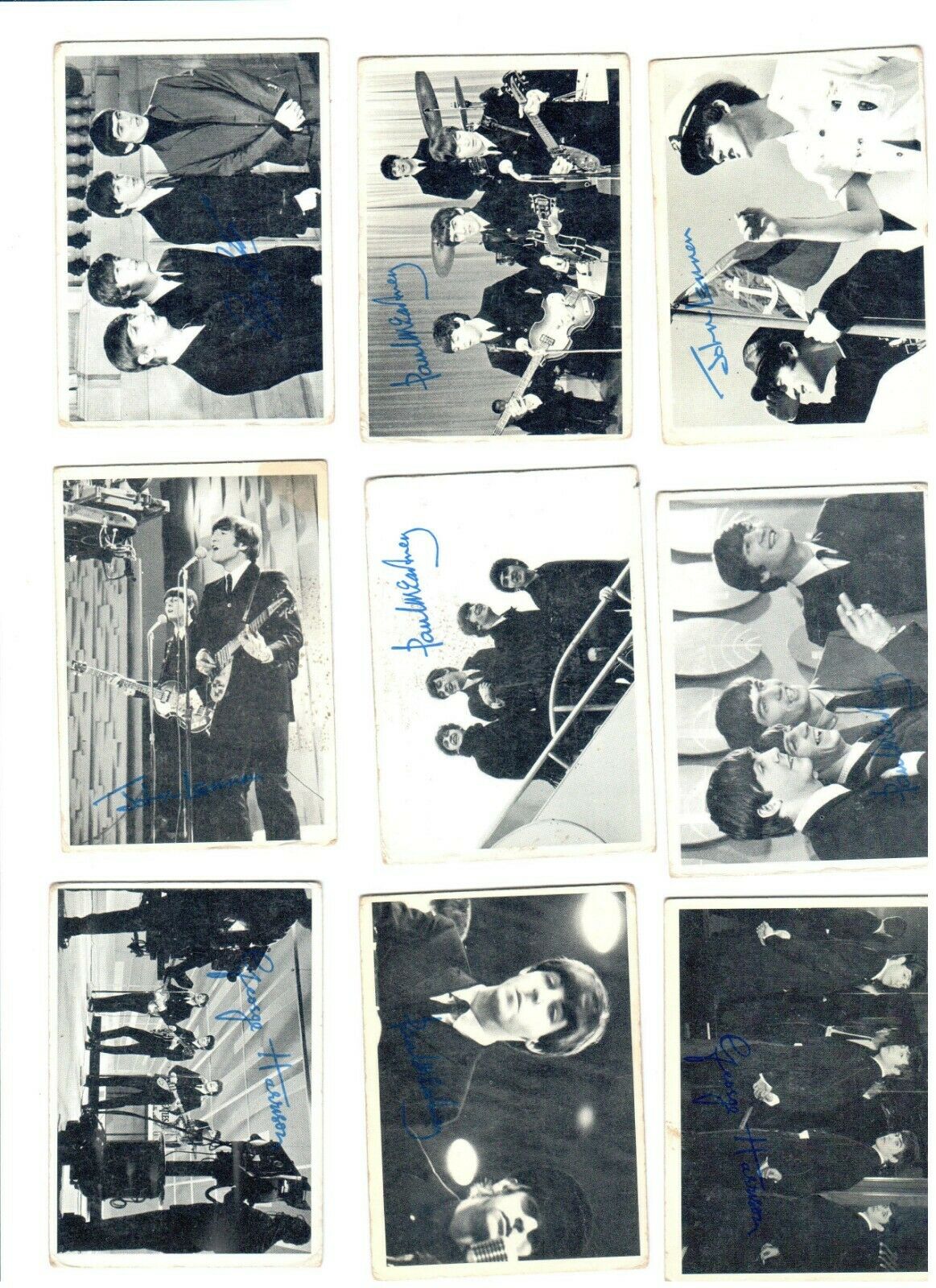 1964 Original Beatles Black & White 2nd Series Trading Cards 9 total cards.