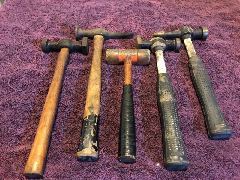 Lot of 5 Vintage Hammers Auto Body Blacksmith Tinner''s Metalsmith Shop Tools